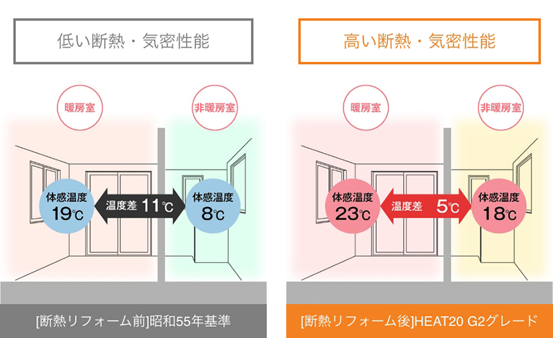 例えば、ヒートショックのリスクを軽減するためには、家全体の断熱性を高めて、部屋間の温度差を少なくすることが大切です。